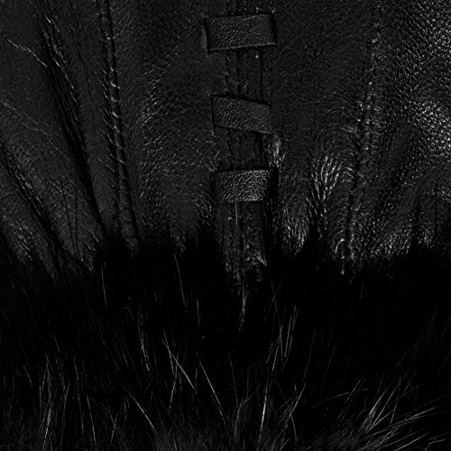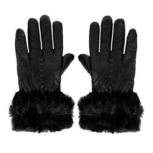 (Accessoryo)/Accessories/Cold Weather Accessories/DIRECT FROM USA/Women's Real Leather Black Gloves with Super Soft Faux Fur Trim
