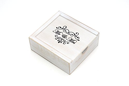 Antique Maple 8GB USB Flash Drive - Stained in Wedding White - Inserted into a Printed Matching Maple Stained Box with Raffia grass inside. MR & MRS Design!