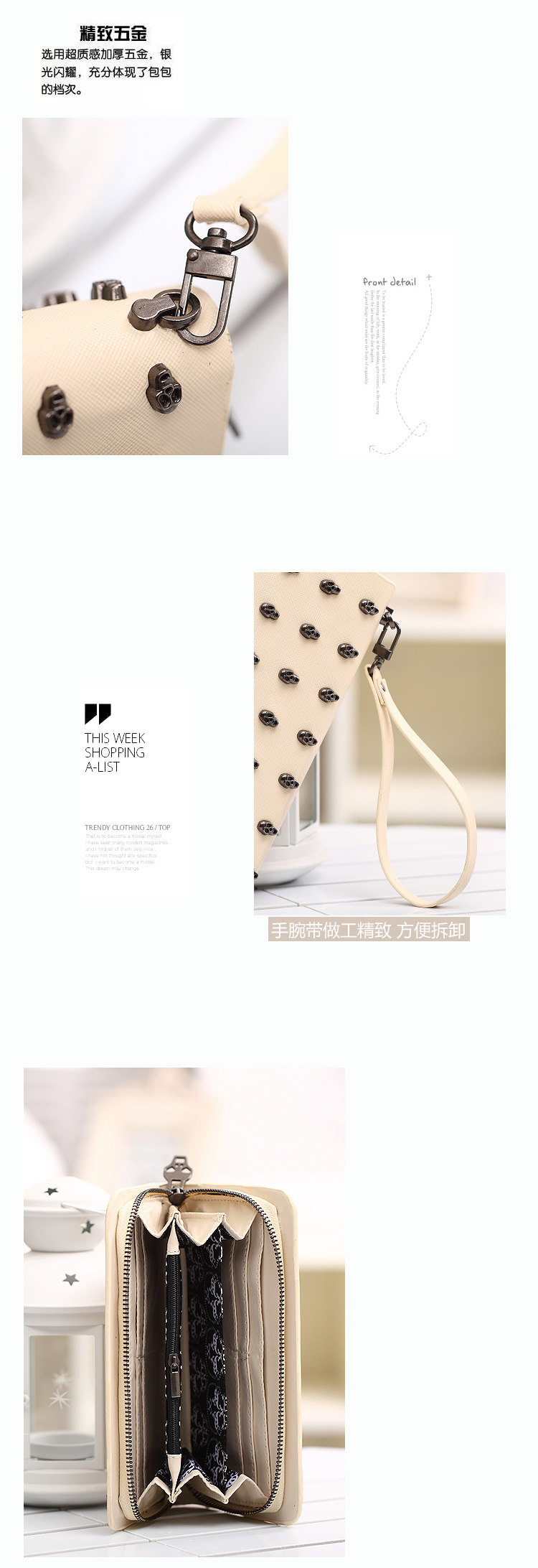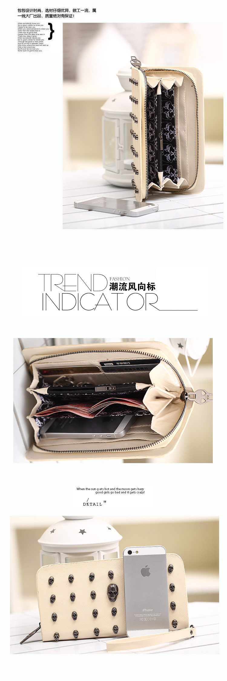 Internal structure: 8 card slots a cell phone bit, two bills clip, a coin pocket two bills bits