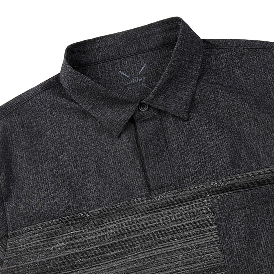 - 고급스러운 쟈카드 스트라이프와 조직감으로 배색된 남성 티셔츠.
