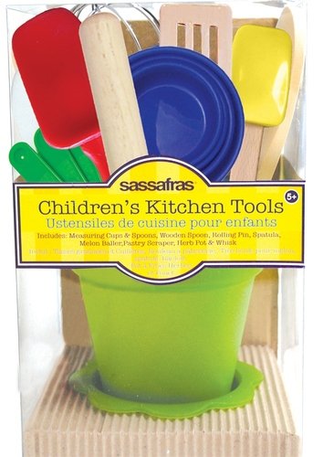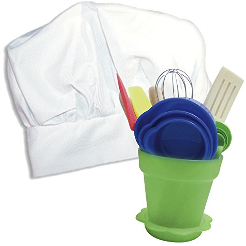 Sassafras "The Little Cook" Kid's Kitchen Tool Set with BONUS Chef's Hat -Dishwasher Safe Children's Cooking Kit includes Herb Pot -Includes 16 Piece Children's Kitchen Tool Set and Kid's Chef's Hat