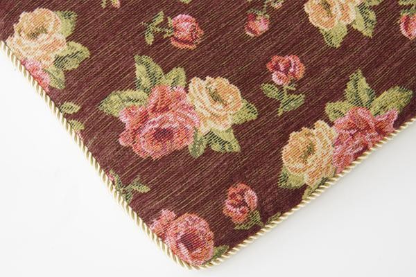 花柄が上品なクッションです。表地にはジャガード織の生地を使用しているため繊細な柄と上品な風合いが特徴です。