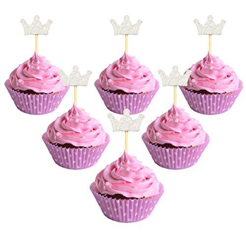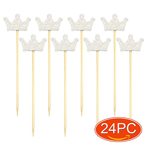 Elesa Miracle 24pc Glitter Silver Crown Cake and Cupcake Topper, Wedding Bridal Shower Birthday Decoration Cake Topper ( 24pc Silver Crown)