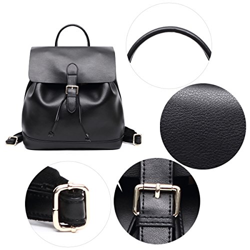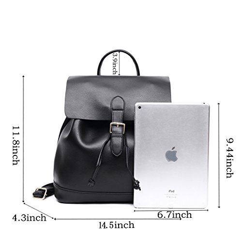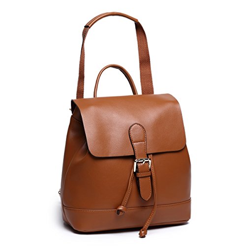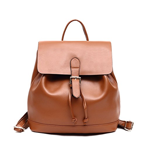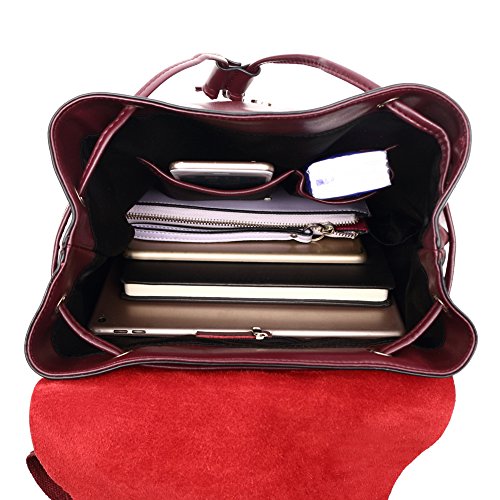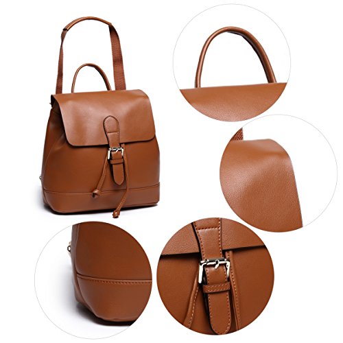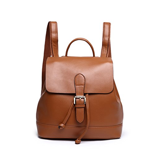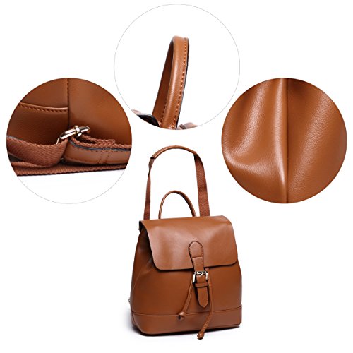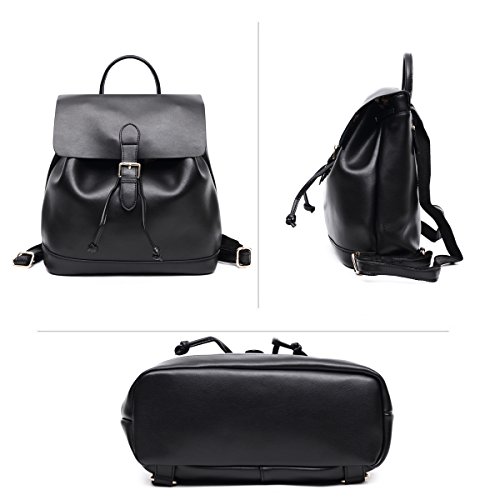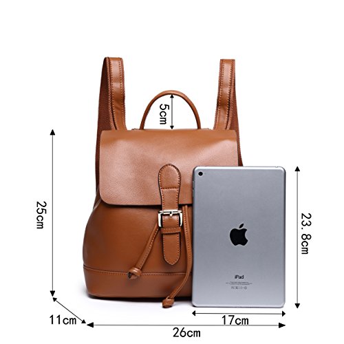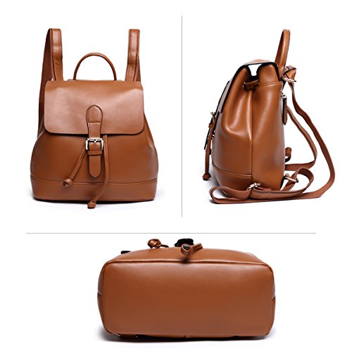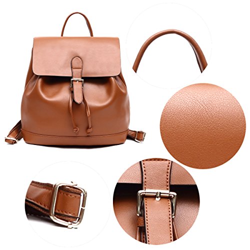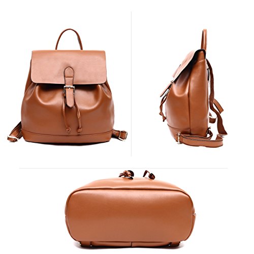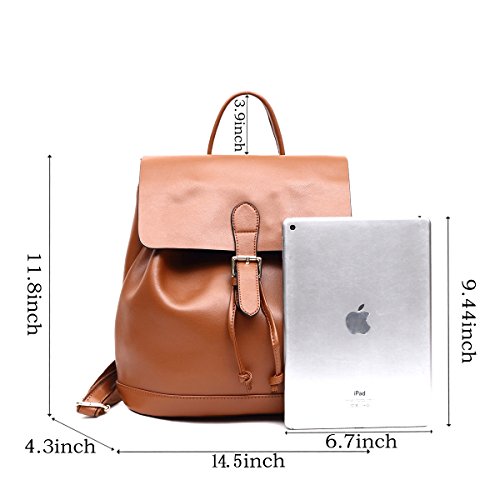 LEASHELL Echt Leder Kordelzug Rucksack Damen Casual Schulrucksack Laptop Schultertasche Gross Tasche fur Frauen Madchen
