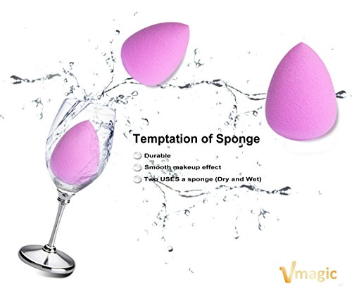 PRODUCT QUALITY AND DESIGN : VMAGIC high-end makeup sponges serve as multipurpose beauty tools, touch-ups and skin care treatments go smoothly with our versatile applicators. Our makeup sponge applicators feature high-quality materials. Our disposable water drop shape sponge has the flexibility to reach facial contours for smooth, even liquid makeup applications. Sponge color is also the same after many assessment and testing, to ensure that no bleaching and durability.