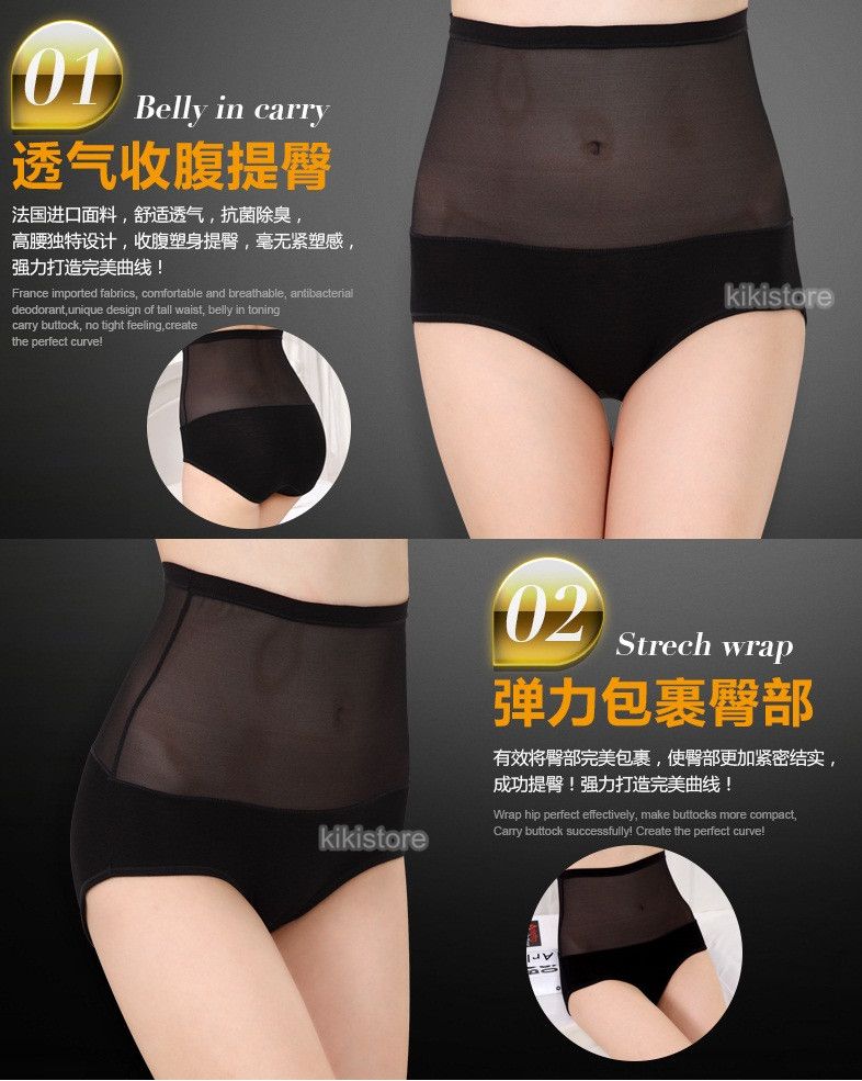 C. High Waist Flatten Tummy Mesh Panties Underwear 2 Pcs Set