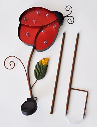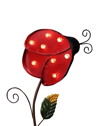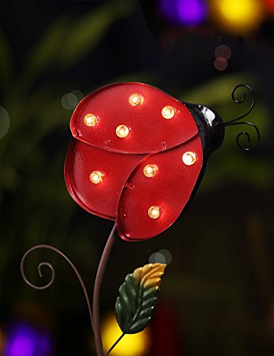 - NATURE-INSPIRED DESIGN MAKES YOUR YARD VIBRANT BY DAY - The striking ladybug design will bring nature-inspired beauty to your yard: large cherry red ladybug flutters through flowers & trees; curved metal antennae create a dramatic display of shapes; the green leaf adds a fresh natural look - Cherry red exudes the Christmas spirit, lending a charm to the yard - This metal stake light will place a smile on your face every time you catch a glimpse of the cute ladybug.