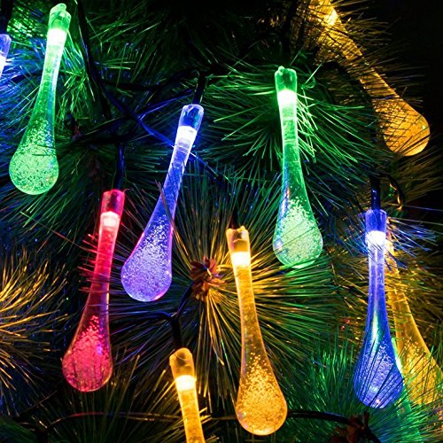 - Vibrant colorful waterdrop 60LED 36FT Solar String Lights outdoor.