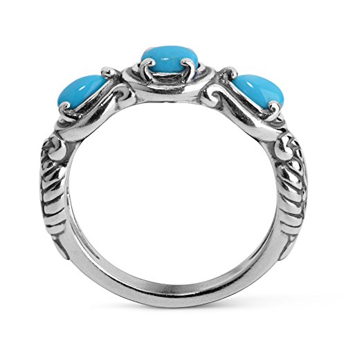 -. Binding : Jewelry -. Brand : Carolyn Pollack -. Department : Womens -. Feature : Sterling silver ring / 0.5ct Turquoise gemstones / Ring measures ¼" tall x ¾" wide / Designed and crafted in America with gemstones from around the world / One prong-set, oval turquoise gemstone in the center flanked by two prong-set, pear-shaped turquoise gemstones atop a scroll and rope detail sterling silver shank. -. Label : Relios -. Manufacturer : Relios -. Model : cp7-4257-145-xx -. MPN : cp7-4257-145-xx -. PartNumber : cp7-4257-145-xx -. ProductGroup : Jewelry -. ProductTypeName : FASHIONRING -. Publisher : Relios -. Studio : Relios -. Title : Simply Fabulous Sterling Silver & Turquoise Three Stone Band Ring