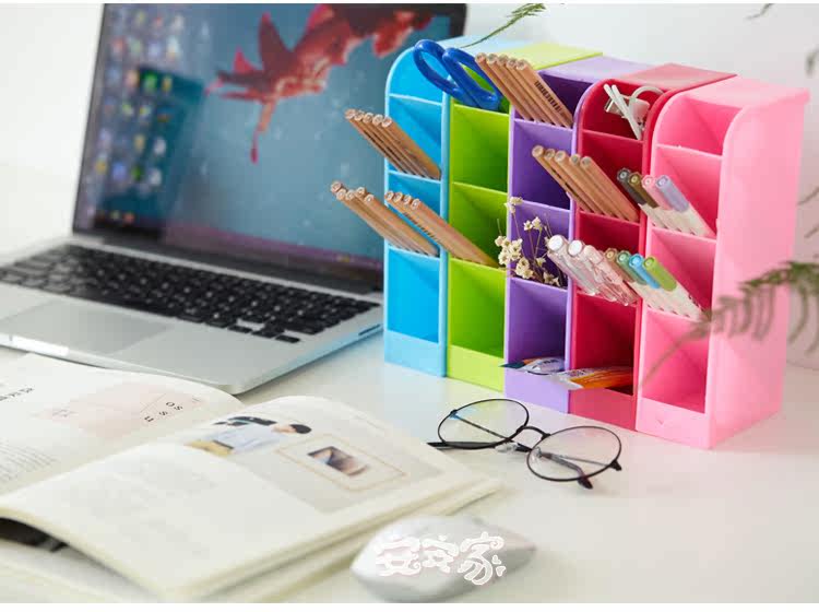 糖果色抽屉塑料分类整理盒 办公文具桌面笔筒 多功能杂物收纳盒