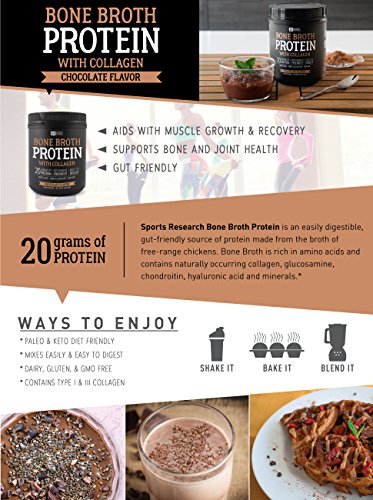 Want to get lean, strong, and sculpted? Whether you're a weightlifting pro or just want to look and feel your best, Sports Research Bone Broth Protein can help you step up your game. Made of 100% chicken, it's an excellent source of muscle-building protein and other nutrients.
