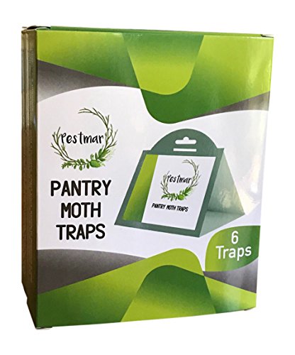 Pestmar Pantry Moth Traps with Pheromones - Non-toxic indoor lure for Indian meal, flour, cereal and grain moths - Use in kitchen pantry, cabinets and cupboards - 6 traps - Make your food safe again