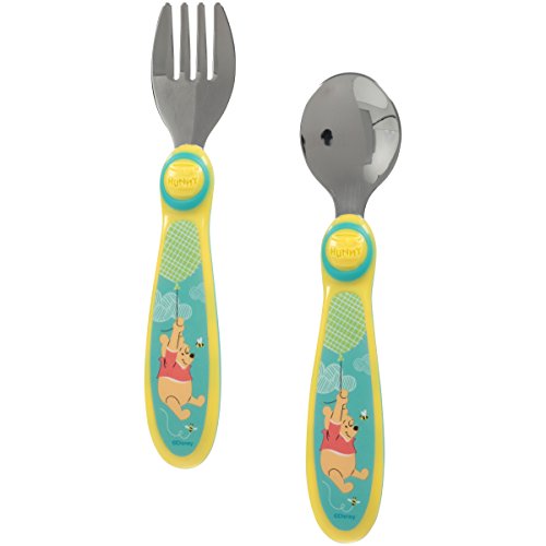 -. Binding : Baby Product -. Brand : Disney -. Color : P.R.Incess -. Department : unisex-baby, baby-boys, baby-girls -. Feature : Easy-grasp fork and spoon set / Colorful characters / Rounded fork tines and a deep spoon bowl for easier self-feeding / Stainless steel with durable plastic handles / Age Grade: 9 months+ -. Label : The First Years -. Manufacturer : The First Years -. Model : Winnie the Pooh Dinnerware -. MPN : Winnie the Pooh Dinnerware Set -. PartNumber : Winnie the Pooh Dinnerware Set -. ProductGroup : Baby Product -. ProductTypeName : BABY_PRODUCT -. Publisher : The First Years -. Studio : The First Years -. Title : Disney Easy Grasp Flatware