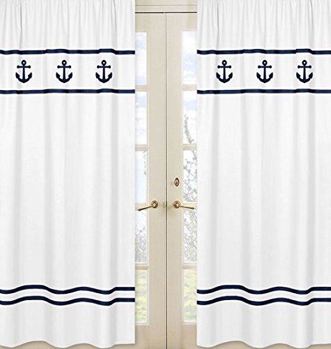 Sweet Jojo Designs 2-Piece Window Treatment Panels for Anchors Away Nautical Navy and White Collection