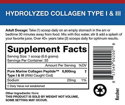 Pure Marine Collagen Peptide™ Powder is sourced from Wild Caught Deep-Sea Atlantic Ocean Fish, such as Cod, or Haddock fish skin. Only the Skins of Kosher Fish are used, NOT scales or bones. Hydrolyzed fish collagen is able to meet the Strict Kosher Standards of the Orthodox Union. Our pure marine fish collagen has been treated with Non-GMO food grade enzymes to break down the collagen molecular size (Dalton weight 2500) for optimum absorption and utilization to the bloodstream.