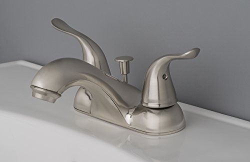 -. Title : Builders Shoppe 2021BN Two Handle Bathroom Vanity Sink 4" Centerset Lavatory Faucet with Pop-Up Drain Brushed Nickel Finish