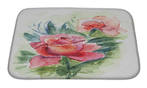 Gear New No Slip Microfiber Memory Foam Beautiful Roses Flowers Watercolor Painting Bath Rug Mat, 24" X 17"