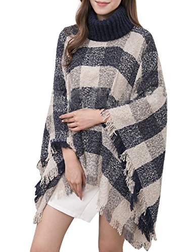 -. Binding : Apparel -. Brand : Dahlia -. ClothingSize : One Size -. Department : womens -. Feature : Neck: 8" x 8", Neck to End: Shortest 21", Longest 33" / Made of high quality acrylic; Available in Black and Tan / Never Outdated plaid with coarse looking yarn, creating a revived fashion trend / Hand wash dry flat / Risk-Free Shopping: quality assurance in addition to a no-question-asked return policy -. ProductGroup : Apparel -. ProductTypeName : SWEATER -. Size : One Size -. Title : Dahlia Women's Knitted Poncho - Coarse Plaid Turtleneck Cape