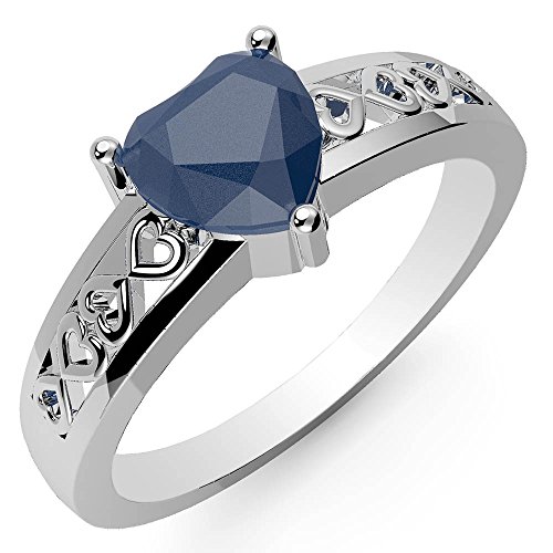 -. Title : 1.35ctw,Genuine Sapphire 6x6mm Heart & Solid .925 Sterling Silver Rings