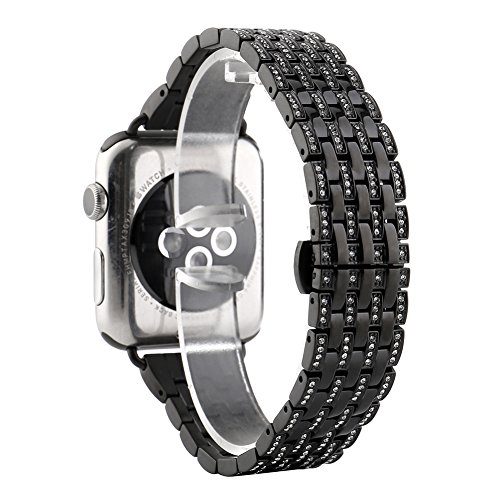 -. Title : KINGLOO Stainless Steel Crystal Rhinestone Diamond Iwatch Strap Replacement Bands for Apple Watch Series