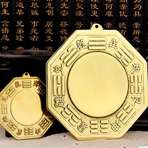 T2C Bagua Luo board mirror back Gold Chinese feng shui entrance mirror Goods for powerful Luck & Success Protection Charm