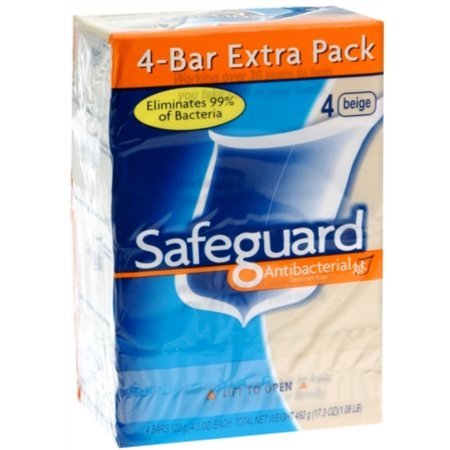 Safeguard Antibacterial Deodorant Soap Beige 16 oz, 4 bars (Pack of 2)