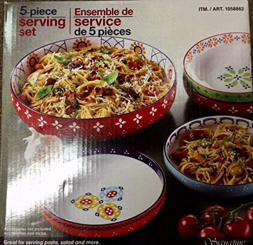 Stoneware Serving Bowl Set 5 Piece Hand Painted Great For Pasta Salad And More
