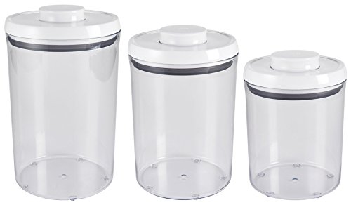 - Set includes: 1.9-qt. container (7"H x 5.7"W), 3-qt. container (8.7"H x 6.2"W) and 4.5-qt. container (10.3"H x 6.8"W)