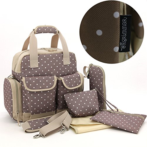 Fashion element: Multifunction Diaper Tote Bags which you can catch by hand or used as a shoulder bags, cross body bags. Beside, it has mini bag, changing mat, and the Paper towels lefted and special keep warming bag on the right side. Convenient! Warm tip: there might be slight colour deviation due to different displays.