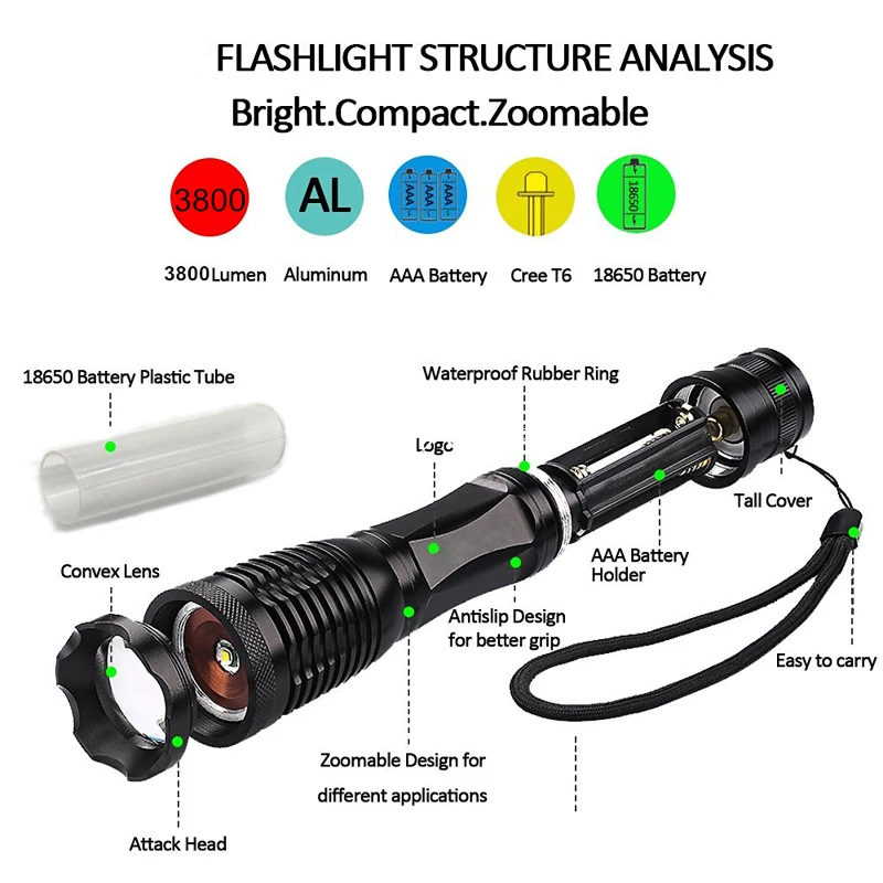 1 xu0026nbsp;XML T6u0026nbsp;flashlight(without battery)