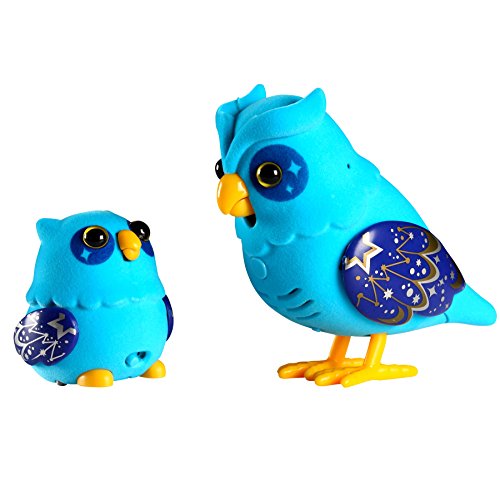 Little Live Pets Tweet Talking Birds are the lifelike electronic pets that move, feel, act and sounds so real. The more you play with them, the more playful they become. The Nightstar Family are a magical blue and gold colouration! Watch Mom Owl interact with her baby owl, or listen to her hoot and coo popular tunes. The Mom Owl also has a special function for kids to record and play back messages. The Baby Owl will also feed from her Mom when close to her. Take them home and make them your own! Collect all three! Includes 1 Owl Bird and 1 Owl Baby Bird and an instruction booklet.Feature