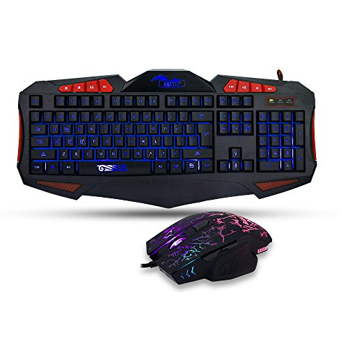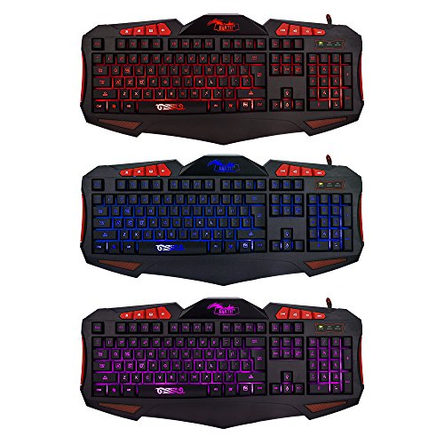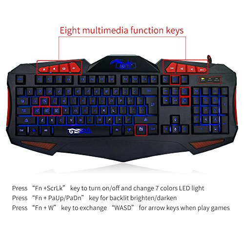 Three adjustable backlit color (Red Blue Purple) pc keyboard and seven color backlit mouse combo.