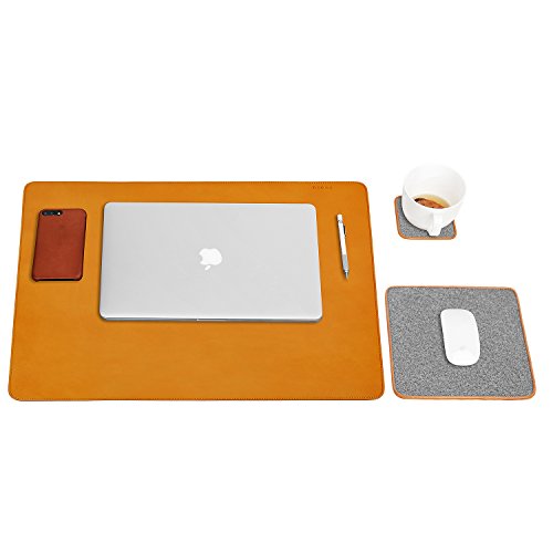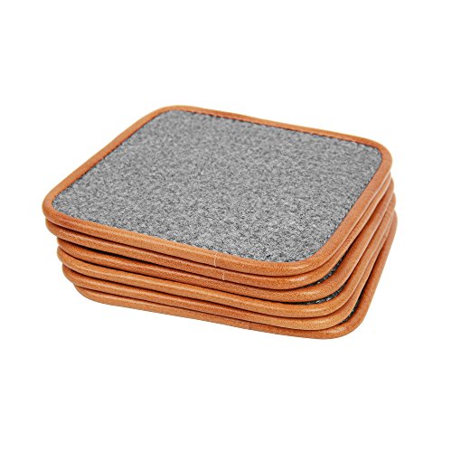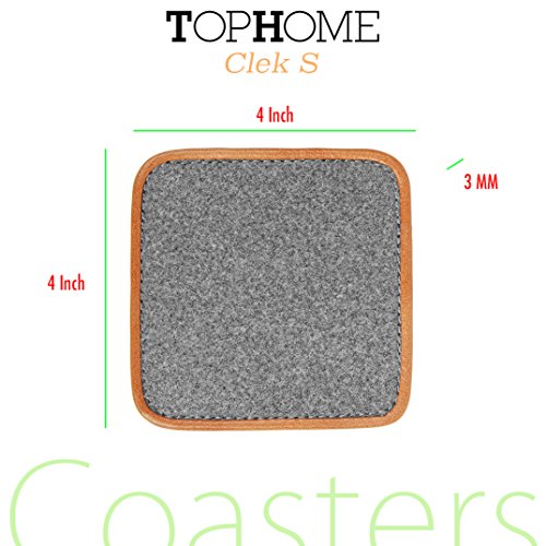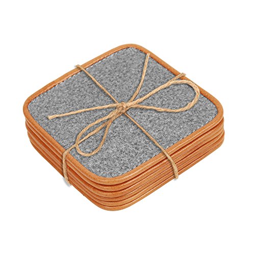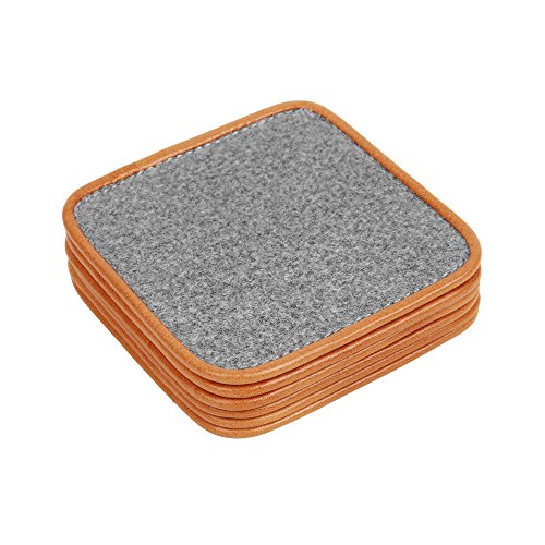 TOPHOME Cup Coasters Square 6 Piece/package Felt Genuine Leather Edge Gray for Drinks Tea Cups Saucers Table Topper Decoration (S, Grayo)