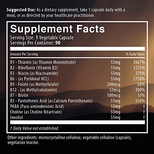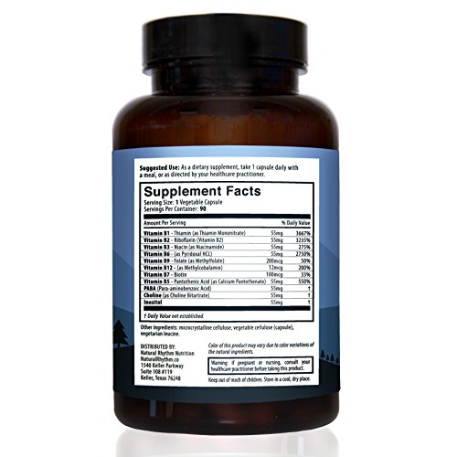 -. Feature : MANAGE STRESS: Our unique stress B-complex supports proper nerve function and relaxation. / PREMIUM QUALITY: B-Calmplex contains the active form of folate (methylfolate) rather than folic acid, it's Gluten Free, Vegetarian, Easy to Swallow, Not Derived from Yeast, and Non-GMO! / ADRENAL SUPPORT: Has extra Vitamin B5 to support the adrenal glands / HEART HEALTH: Promotes cardiovascular health and overall cellular renewal. Helps decrease stress, anxiety, and fatigue while helping to boost your energy and mental focus. / RESTORE YOUR RHYTHM: B vitamins are important for proper circulatory function, for maintaining blood pressure within normal ranges, and preserving proper cholesterol and homocysteine levels, boosting your immune system and reducing irritability.