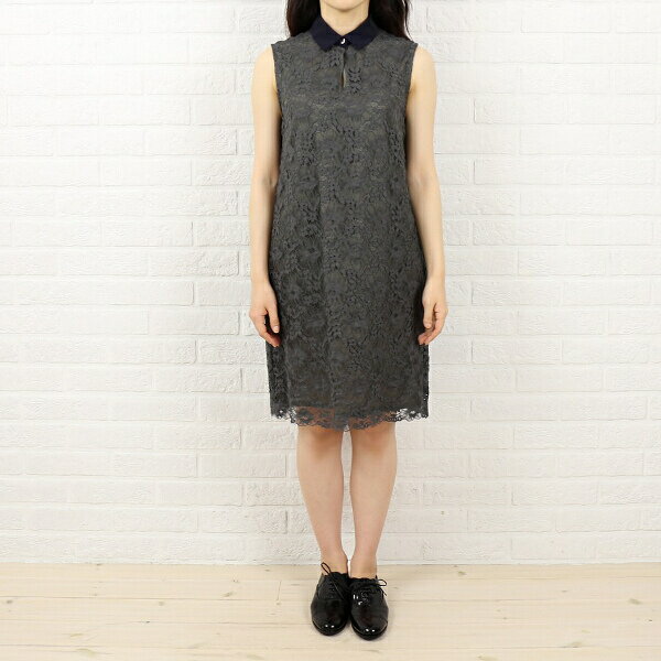 SACRA(サクラ) ポリエステル コットン 襟配色 総レース ノースリーブ ワンピース・SE616041