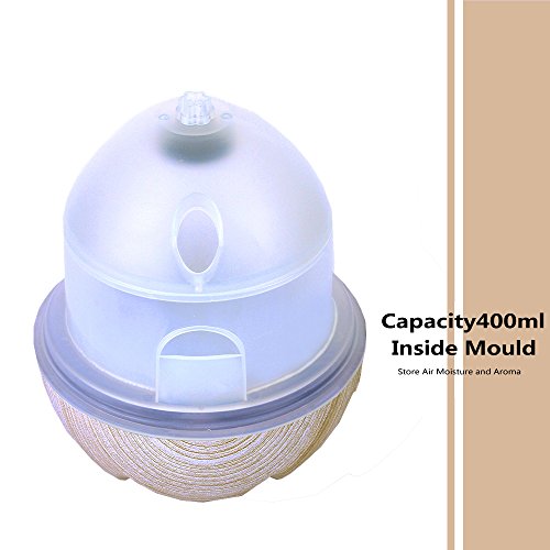 The aroma humidifier can hold up to 400mL of water and produce up to 30mL of moisture per hour. It can run up to 10 hours of continuous output and disperses high mist output silently.