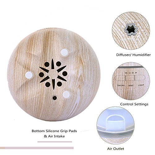 TechVibe 400mL Aromatherapy Aroma Essential Oil Diffuser Cool Mist Humidifier with Color LED Lights For Office Home Bedroom Living Room Study Yoga Spa - Nature Wood Grain