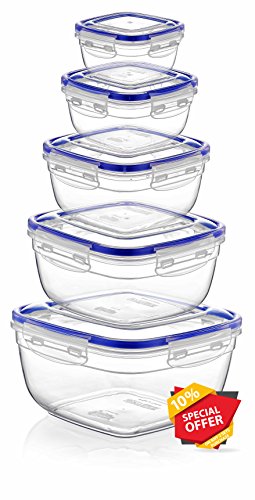 Lock&Fresh BPA Free Plastic Sealed food Storage Container Set 5 pcs 17 oz.- 127 oz.