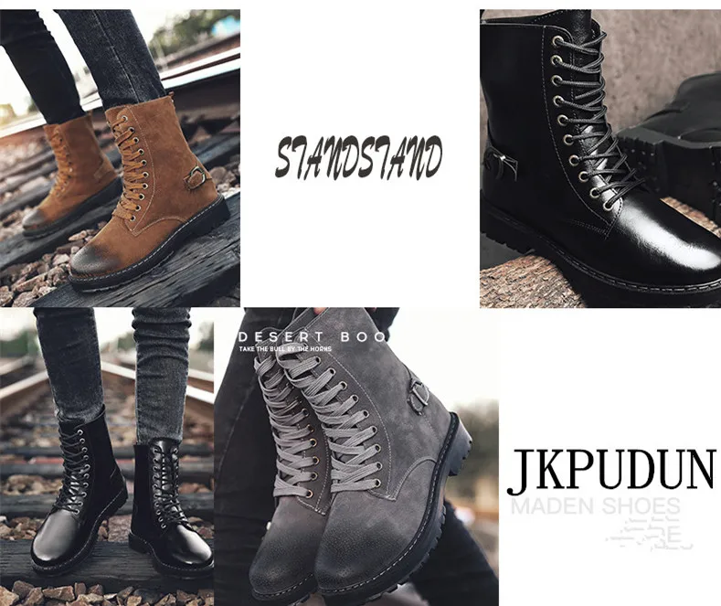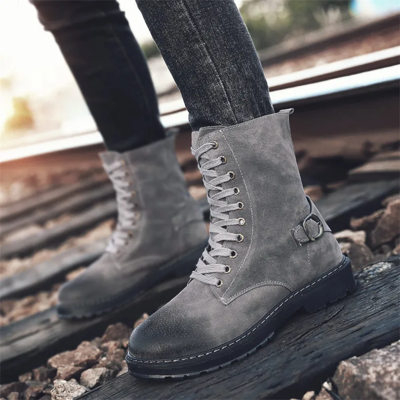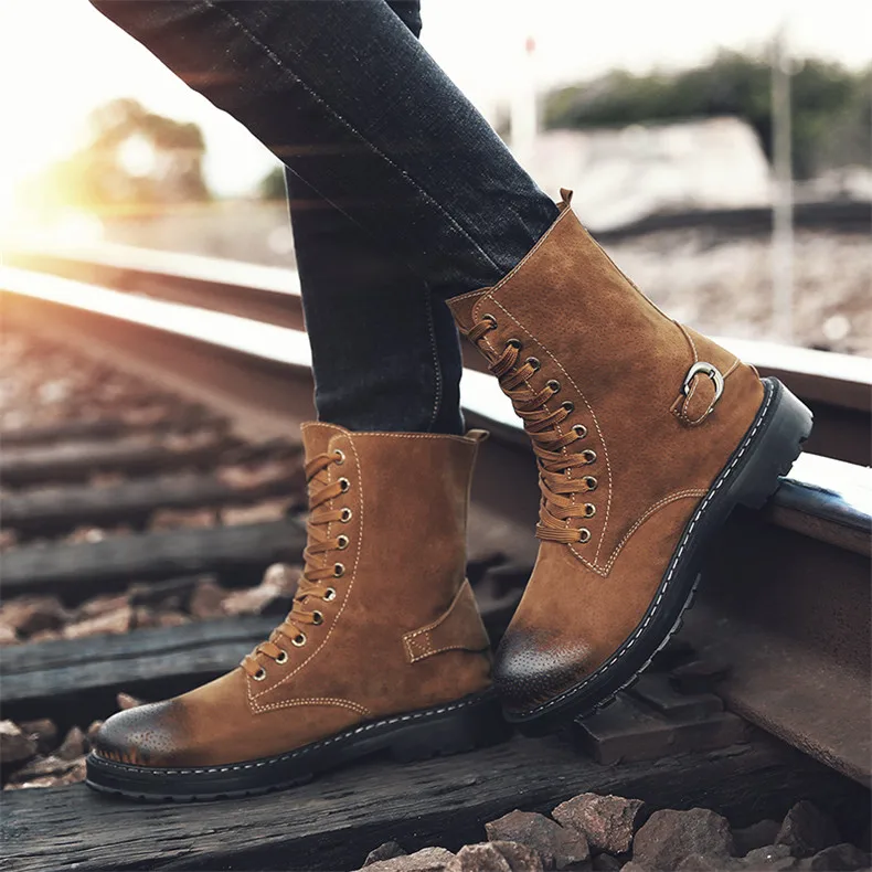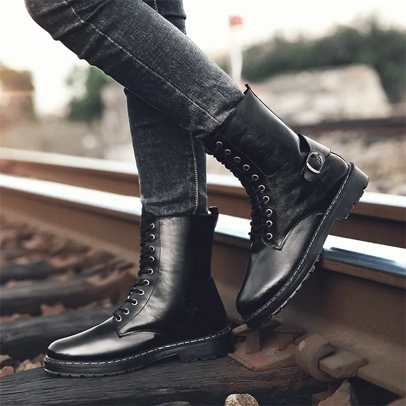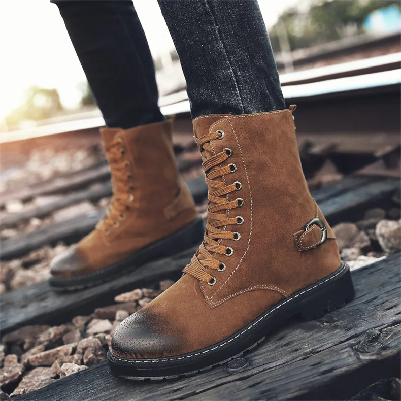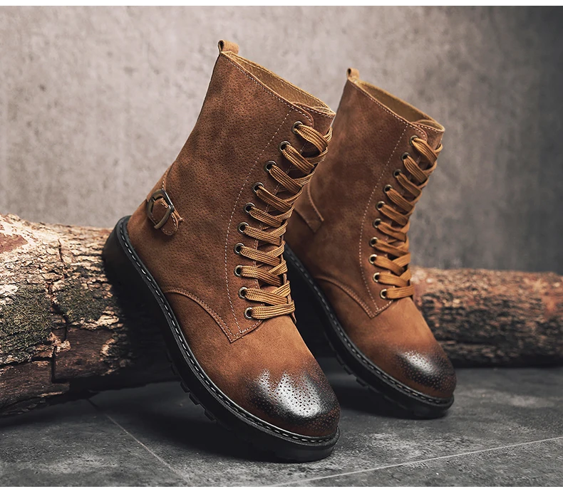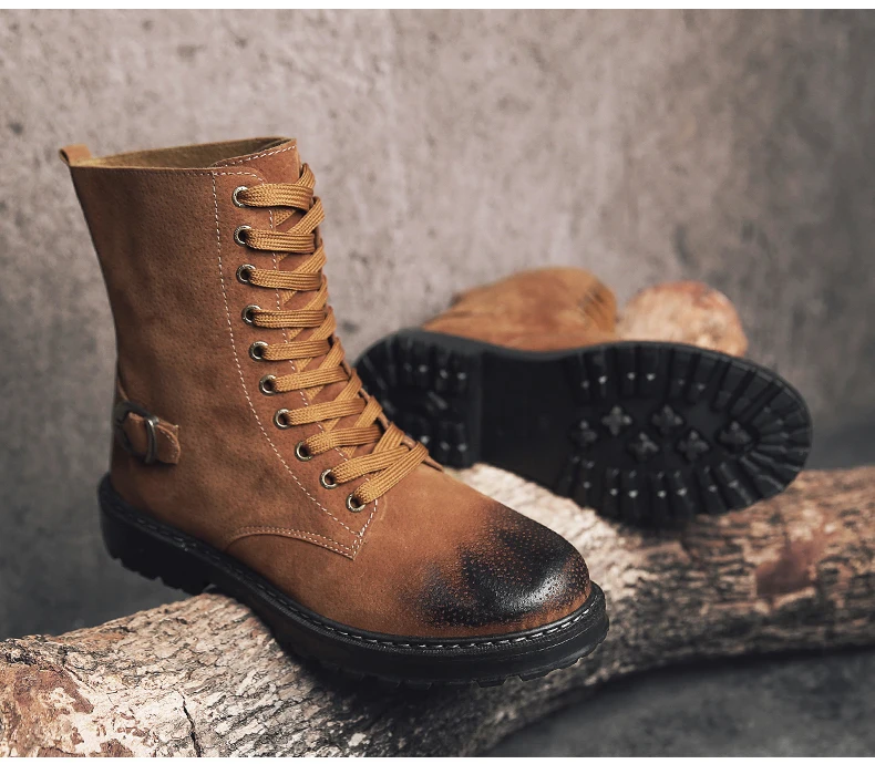 Mens boots casual:Leather boots men