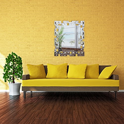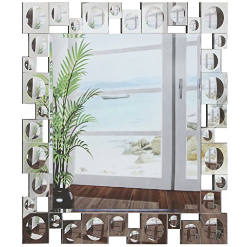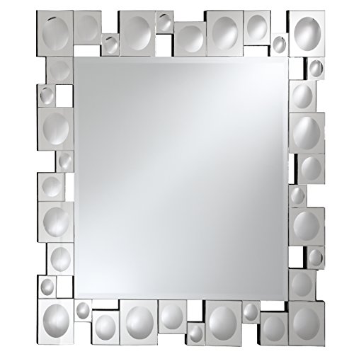 Breeze Point 24" x 28" Rectangular Beveled Retro Modern Wall Mirror - Decorative Mirror Framed with Dimensional Mirrored Squares, Silver (M00204)