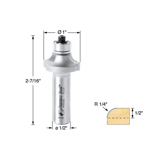 Amana Tool 49506 Corner Round 1-Inch Diameter by 1/2-Inch Cut Height by 1/4-Inch Radius by 1/2-Inch Shank Carbide Tipped Router Bit