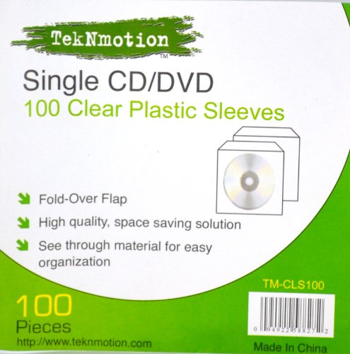 TekNmotion Single CD/DVD 100 Clear Plastic Sleeves B004PFIRMO
