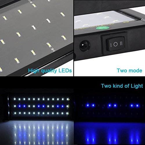 Mingdak LED Extendable Aquarium Light Fixture for Fish Tanks,36 Leds,12.6-inch,white and Blue