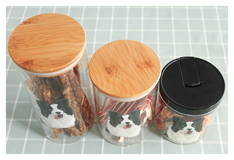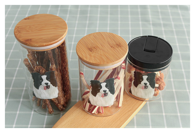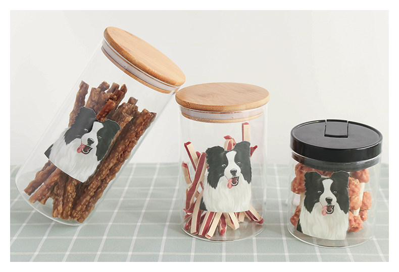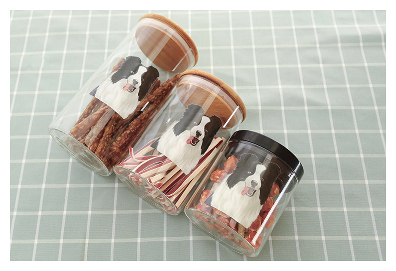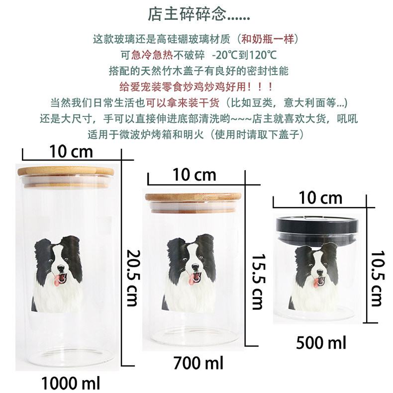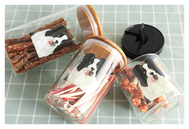 边牧系列玻璃密封罐食品杂粮储物罐厨房带盖茶叶罐透明宠物零食罐