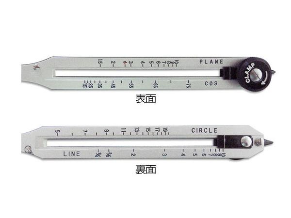 面倒な計算なしで直線、円、平方、立方の等分割寸法が求められます。cosθ(軸測投影図の縮み寸法が求められる)や黄金分割比目盛り付きです。