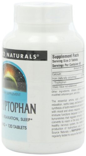 Source Naturals L-Tryptophan 500mg, Enhances healthy mood, sleep, & stress reduction, 120 Tablets