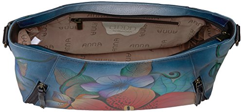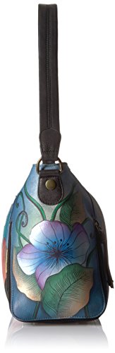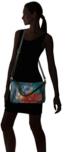Anuschka Anna Handpainted Leather Wide Crossbody Satchel-Midnight Floral