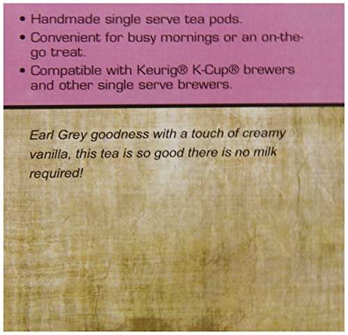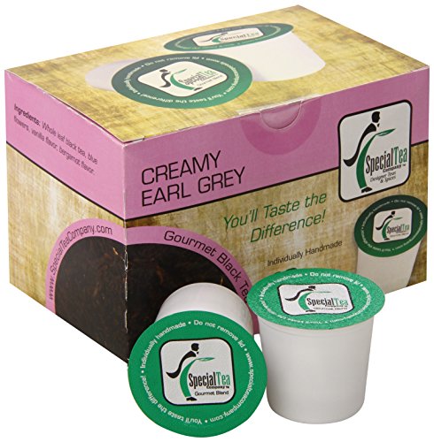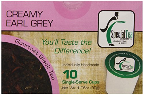 -. Binding : Grocery -. Brand : Special Tea -. EAN : 0687847813569 -. Feature : Handmade Single Serve Tea Pods / Convenient for busy mornings or an on-the-go treat / Compatible with Keurig K-Cup (R) brewers and other single serve brewers, not compatible with Keurig Vue (R) or Rivo (R) / Our single serve pods are individually sealed for freshness, you will taste the difference / Brew two cups from a single cup -. Label : Special Tea -. Manufacturer : Special Tea -. MPN : 687847813569 -. NumberOfItems : 1 -. PackageQuantity : 1 -. PartNumber : 687847813569 -. ProductGroup : Grocery -. ProductTypeName : GROCERY -. PublicationDate : 2015-02-28 -. Publisher : Special Tea -. ReleaseDate : 2015-02-28 -. Studio : Special Tea -. Title : Special Tea Single Serve Cup, Creamy Earl Grey Black Tea, 10 Count -. UPC : 687847813569