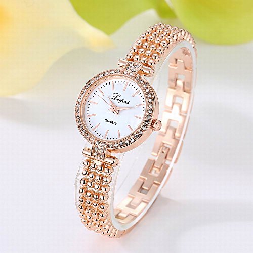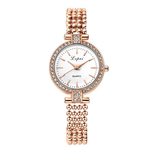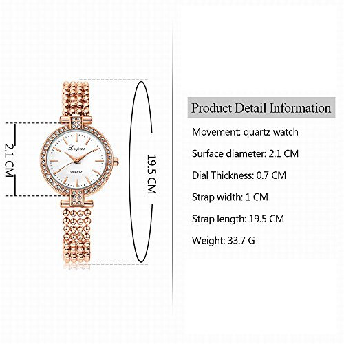 -. Feature : 30M WATER RESISTANT: withstands for hand and face washing, not suitable for diving, bathing, swimming / ANALOG QUARTZ WATCH: durable quartz movement for accurate time-keeping, without the matter of everyday time-proofread / COMFORTABLE AND FUNCTIONAL WRIST WATCH: polished metal watch band and case for comfortable wear, round 3-hand analog display for reading / STYLISH DESIGN: metal beads meshed band with artificial diamonds around instead of traditional linked bracelet, add a difference to this rose gold watch / BEST GIFTS FOR WOMEN: use an affordable P.R.Ice, buy a branded watch packed in a beautiful gift box. Thus it becomes a hot sale gift for Christmas, birthday, Mother's Day, Valentine's Day, wedding etc.