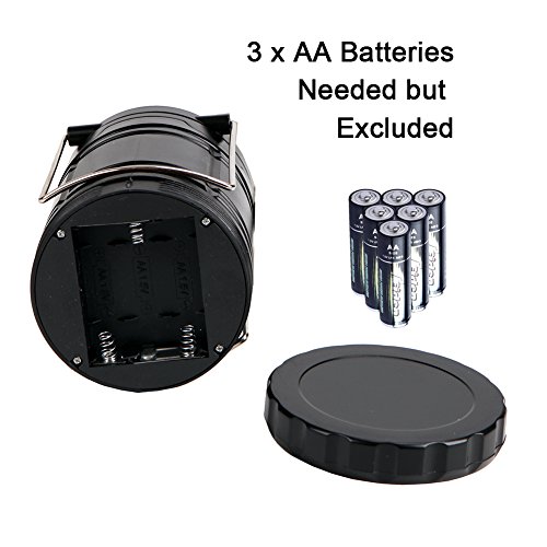 LONG LIFE SPAN: This camping lantern is built for maximum brightness while still maintaining over 100,000 hours of LED bulb life span .The lantern requires 3 AA Batteries (not Included)